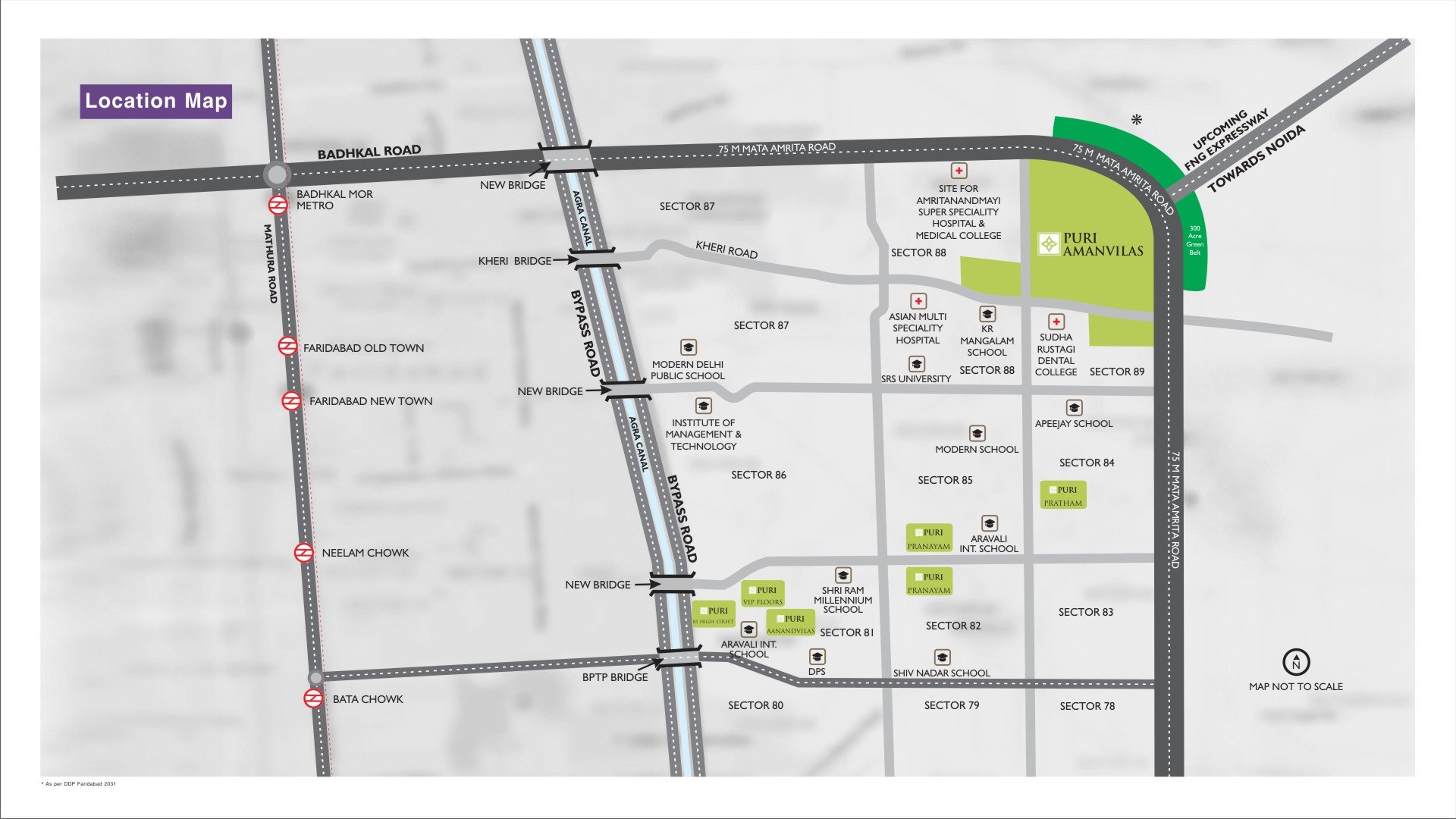 Amanvilas, an integrated township, has been carefully master planned with gated pockets having regulated entry and exit. Replete with landscaped parks,wide internal roads, separate pedestrian & cycletracks, solar panels for street lights, rainwater harvesting and plethora of daily conveniences, life at Amanvilas is as complete as it gets. Here’s an opportunity to own freehold plots just 30 minutes from South Delhi like good old times.